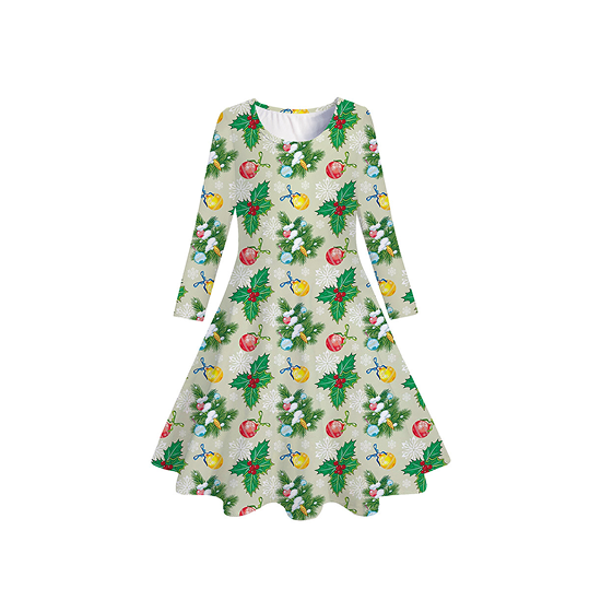 Christmas Themed Girls Casual Dress with 3D Print Design for Holiday Parties Events and Everyday Wear